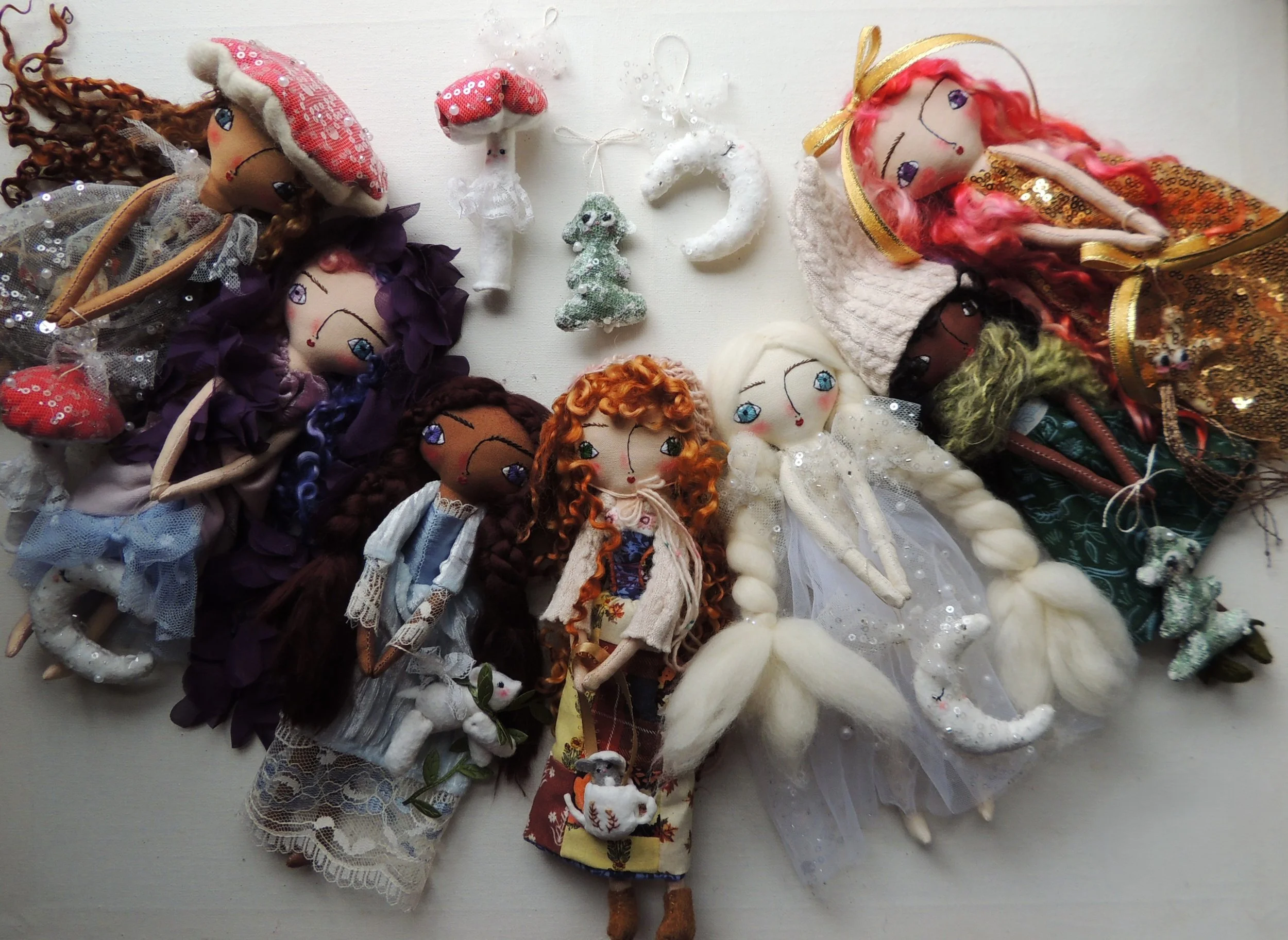 Every doll is made by me in the top of our vine covered home, in a midwestern city.